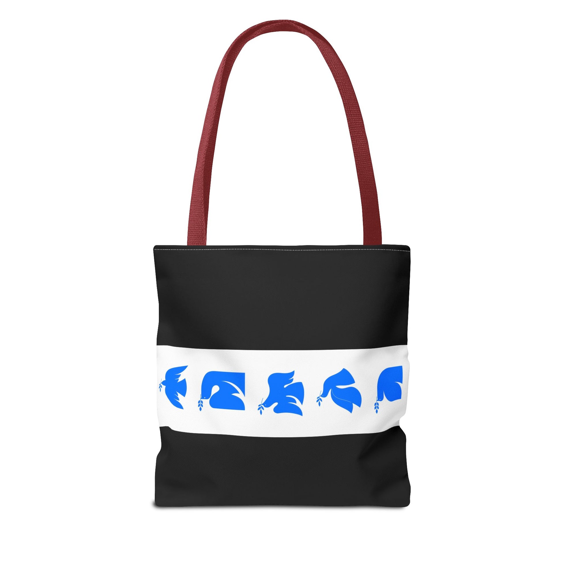 Available in 3 sizes to add both functionality and style, these custom-printed tote bags come with multiple handle colors to match your designs. Made with spun polyester, these bags feature double-stitched seams, cotton webbing straps, and nonwoven laminate lining for high-end durability. Your all-over print is created with dye sublimation for high-end visuals.